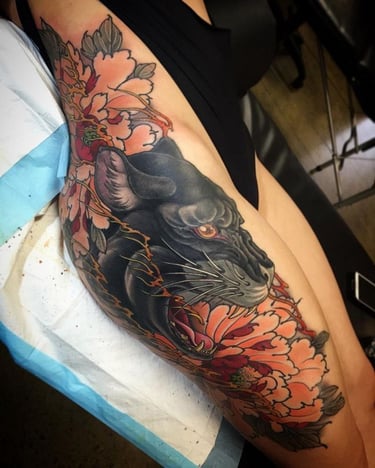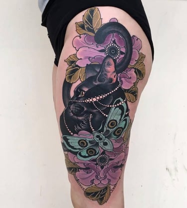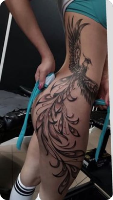 Your personal gateway to stunning thigh tattoo inspiration and expert artistry.