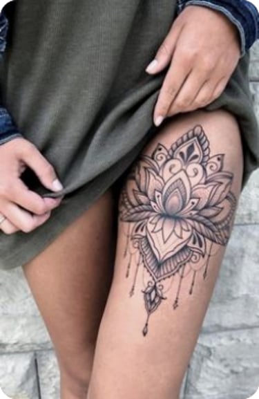 Browse a curated gallery of thigh tattoo styles from mandalas to fine-line art.